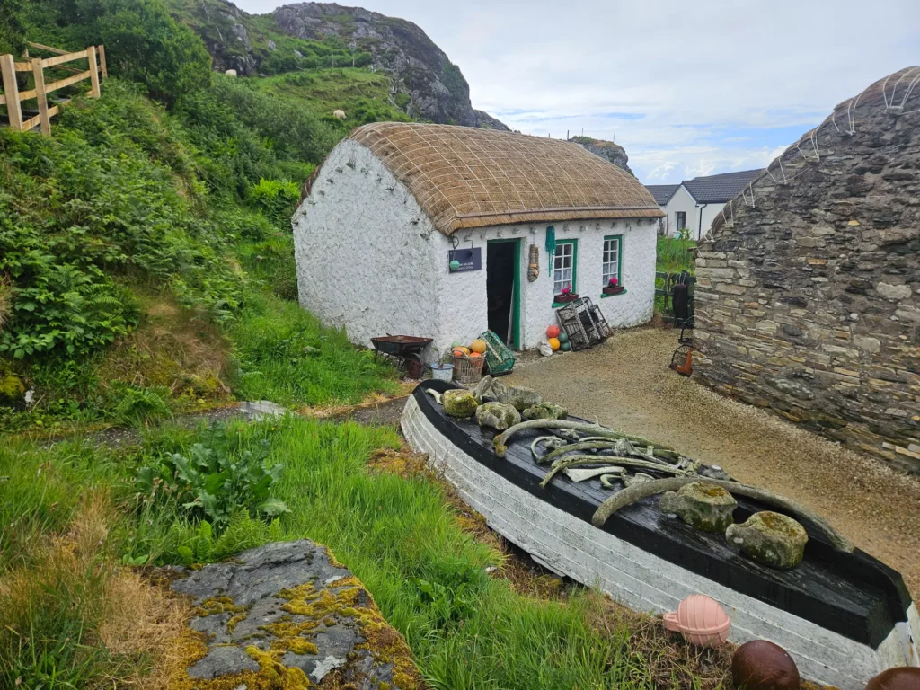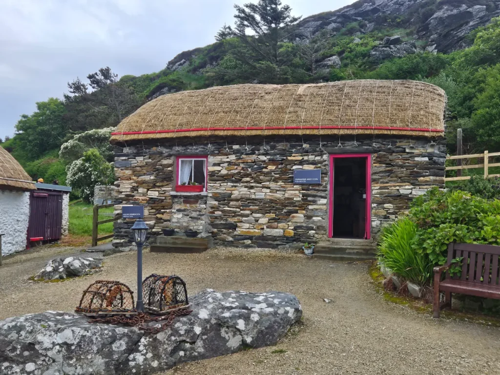The Fisherman’s cottage is an exhibition house opened in 2011 together with the Pub-Grocer. The Fisherman’s cottage depicts the local fishermen’s living conditions and is similar to the type of one-roomed cottage lived in by artist Rockwell Kent and poet Dylan Thomas when they visited the area in the early 20th century. Some artwork associated with their visit to Glencolmcille is on display in the School house and Tea Rooms.